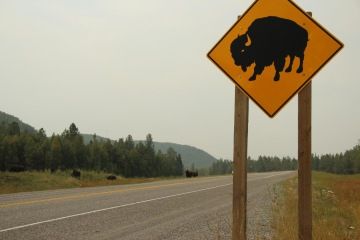 Dalším ikonickým milníkem pro nás bylo setkání s divokými bizony. Ty jsme prvně zahlédli pást se na schované loučce kousek od cesty, bylo to majestátní. Jsou to nádherná, klidná zvířata…Dál jsme je potkali i podél cesty a mohli je obdivovat ještě několikrát například za Coal River.