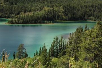 Noc jsme strávili na malé pasece u Emerald Lake, které vás nadchne svými tyrkysovými barvami, jenž ještě umocní zářící sluníčko. Jeho barva vzniká právě odrazem slunečních paprsků od na dně uloženého vápníkového jílu. Když si vyjdete trochu na okolní kopec, tak je na jezero opravdu nádherná vyhlídka nebo tyrkysové barvy uvidíte i ze silnice, která pomalu stoupá nad jezero. V Kanadě není problém v těchto odlehlých oblastech zastavit u krajnice a v klidu si vše prohlídnout a vyfotit.