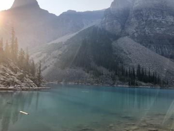 Kousek od vesnice Luise se nachází pro mě asi nejkrásnější jezero Lake Moraine, které mě uchvátilo svou tyrkysově modrou barvou. Leží v Údolí deseti vrcholů, jejichž štíty se v něm odráží. K jezeru vede několik km dlouhá cesta, která je uzavřená a pouštějí sem jen určitý počet aut kvůli kapacitě parkoviště. Musíte tam být buď velmi brzy ráno kolem 6 nebo si zaplatit nějaký shuttle bus, který tam jezdí anebo jako my: stát poblíž s výhledem na zátarasy a hlídat až to strážce pro pár aut otevře 😊 chce to trpělivost a rychlost, ale nám se zadařilo. Jen jsme tam byli hodně brzy ráno a slunce bylo ještě schované za hřebenem, takže jsme museli čekat. Ideální je to asi dopoledne, jen je menší pravděpodobnost, že se tam dostanete autem. Kolem jezera se můžete kus projít, půjčit si lodičku a projet se na něm nebo navštívit místní hotel s občerstvením a suvenýry. Je zde také možnost ubytování, ale cena samozřejmě odpovídá vyhlášené lokalitě. Každopádně by to byl krásný zážitek 😊.