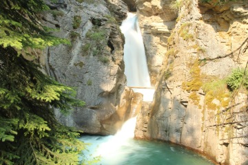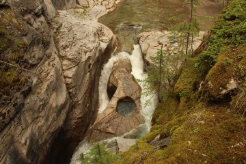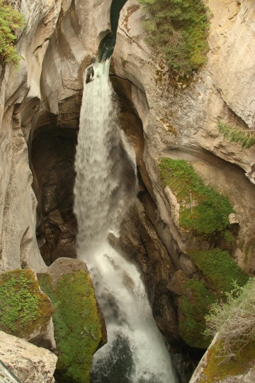 Místo toho jsme se zastavili na další krátkou procházku v Maligne Canyonu, kde kopírujete tok divokého přítoku řeky Athabasca River. Říčku různě přechází přes mosty, kocháte se jejími vodopády, kaskádami, tůněmi a obdivujete se přírodě, jak toto všechno dokázala vytvořit. Voda je opravdu neskutečný živel, který si najde cestu téměř vším.