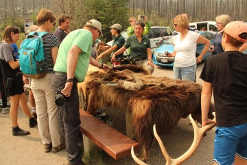 Naším dalším cílem bylo překrásně do modra zbarvené jezero Maligne Lake, ke kterému se jede přes městečko Jasper, jezero Medicine Lake a po téměř 60 km k němu dojedete. My jsme to u Medicine Lake vzdali, protože kouř byl stále všudypřítomný a nemělo cenu jezdit tak daleko, abychom byli z té šedi zklamaní jako u Peyto Lake. Můžete zde vyrazit na různé túry nebo se lodí dostat až do vzdálených částí jezera, kde jsou kempy pro přenocování, takže určitě překrásný zážitek uprostřed divočiny mimo civilizaci.