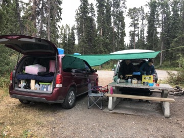 Co s sebou za jídlo? Koupili jsme s sebou jen trvanlivé potraviny: těstoviny, rýži, ovesné vločky, oříšky, konzervy, čaje a podobné. Po cestě jsou jednou za několik dní vždy možnosti koupení čerstvých surovin. V Autě jsme neměli lednici, ze začátku bylo teplé počasí, tak jsme vše čerstvé hned museli zpracovat, ale na Aljašce už bylo kolem nuly, takže jako v lednici a nic se nekazilo 😊 Jediné, na co si dát pozor je, když přejíždíte hranici mezi CAN a USA, kde byste s sebou neměli vézt nic živočišného jako např. ovoce, zelenina, maso…